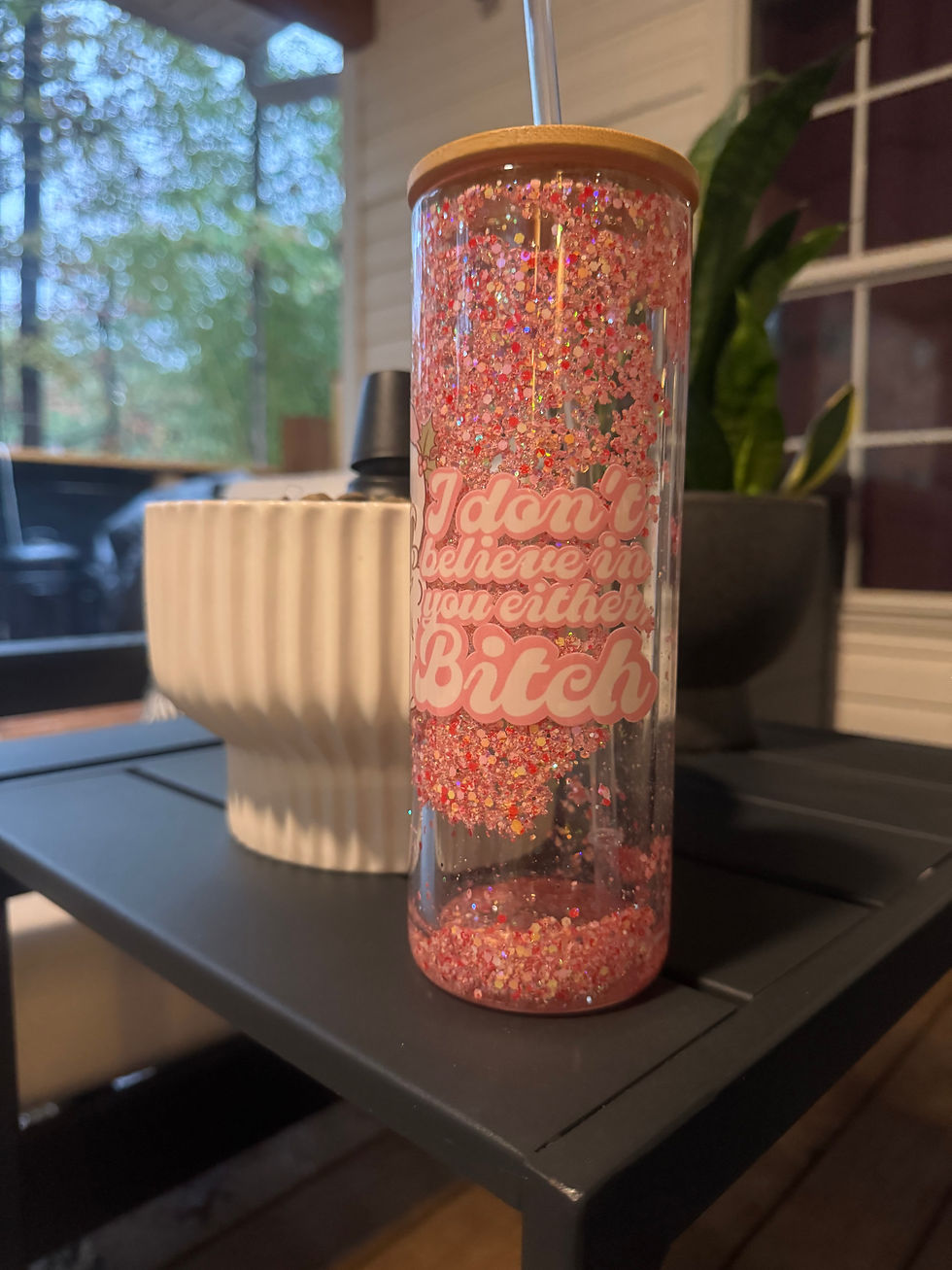 I don't believe in you either B*tch Snowglobe Skinny Glass